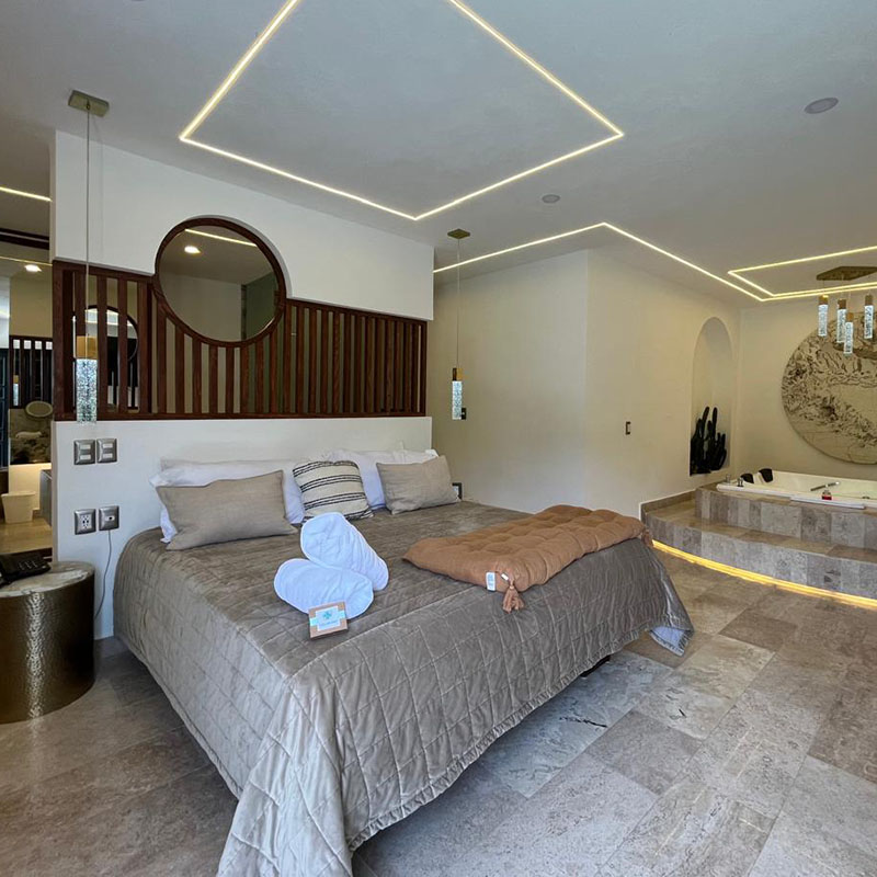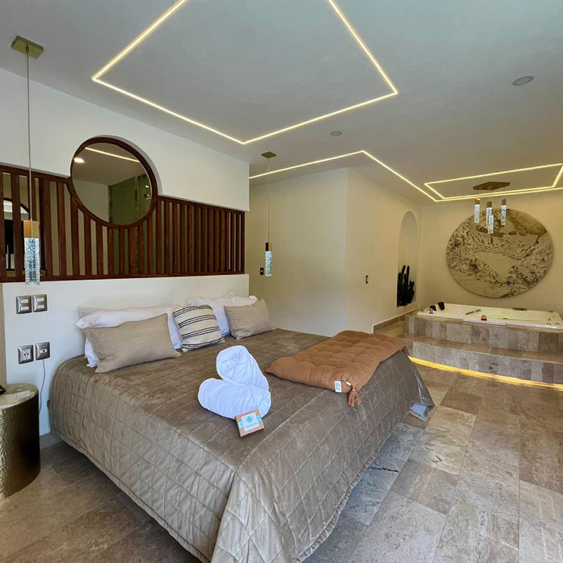 Además de estos servicios puedes pasar la noche en nuestras suites pensadas para un disfrute romántico.